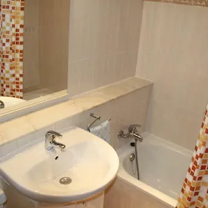 Los baños tienen una bañera y una ducha.